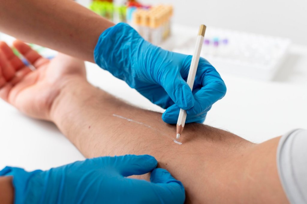 Grâce à la piqûre réalisée avec notre lancette Vegetic, le patient réagit s’il est allergique.